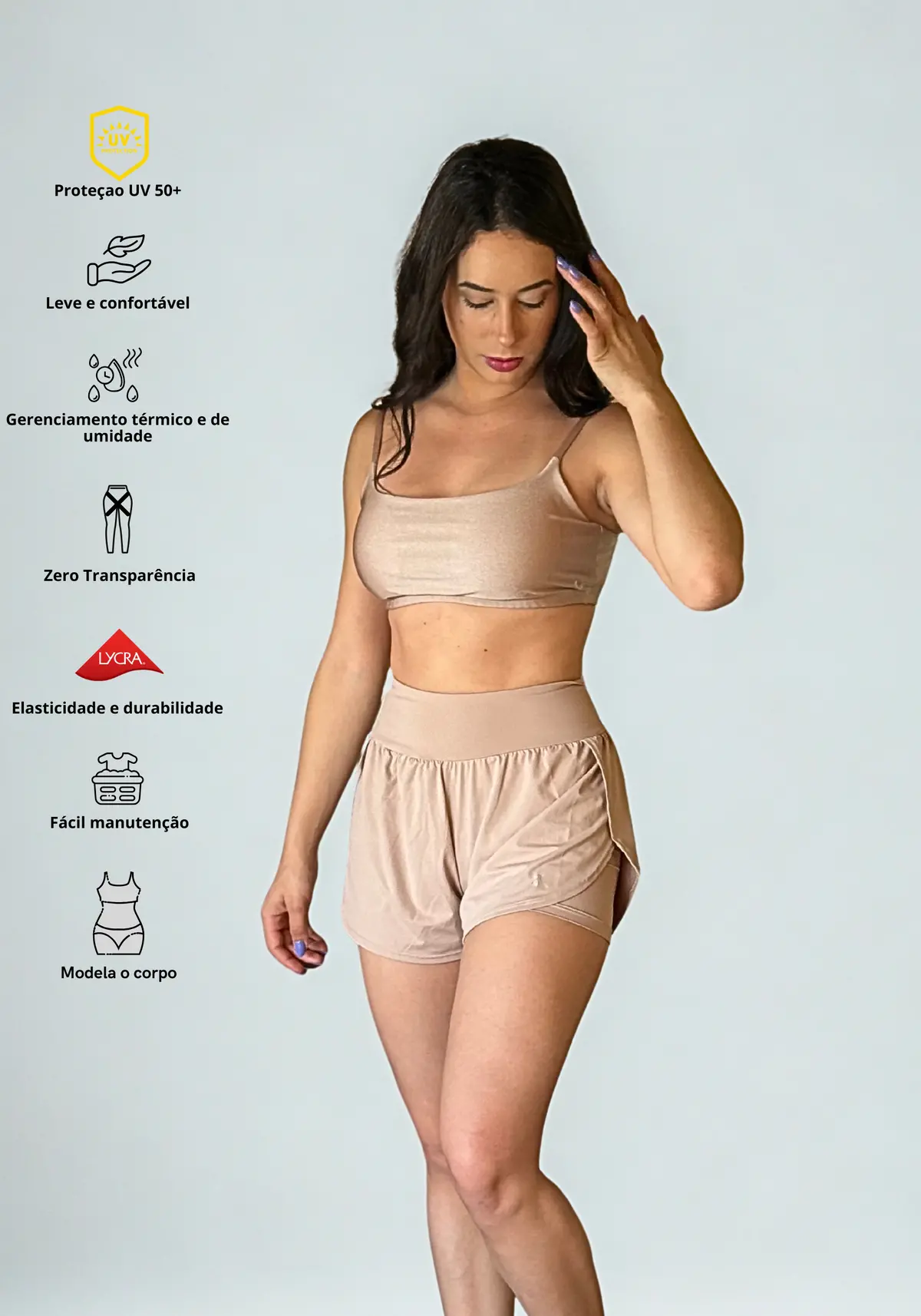 | - | Tecido | Proteção UV 50+, Lycra, Zero Transparência, Disfarça imperfeições, Modela o corpo, Gerenciamento térmico e de umidade, Respirabilidade, Toque fresco, macio e leve, Alta elasticidade e conforto, Easy Care |